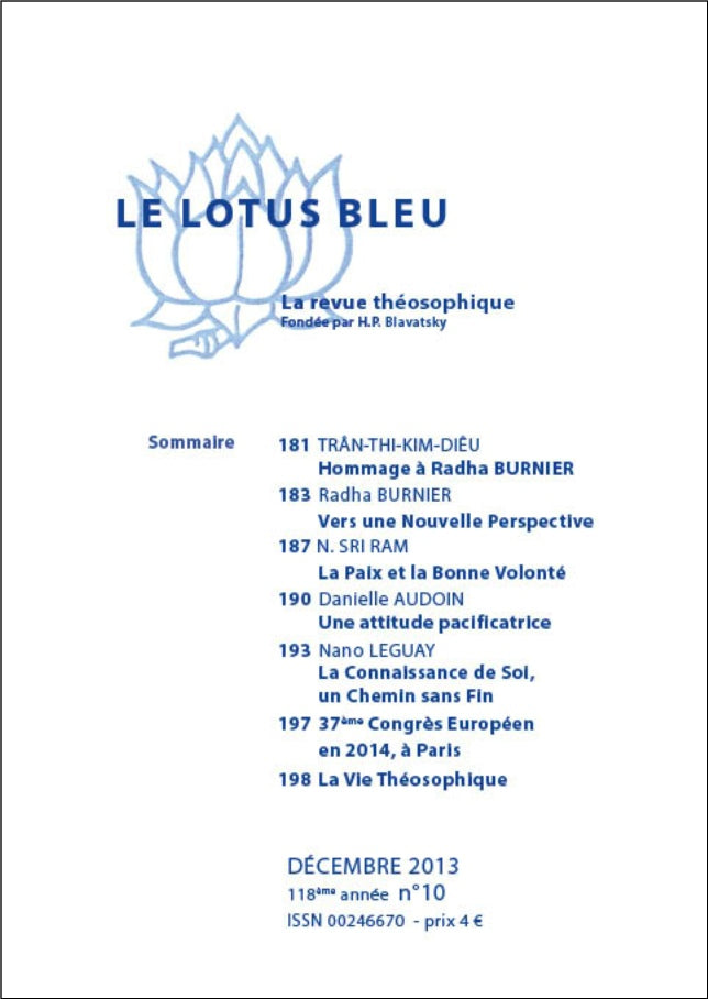 La Société Théosophique de France publie une revue mensuelle intitulé Le Lotus Bleu qui propose des articles très variés sur l’enseignement de la Théosophie et sa pratique.